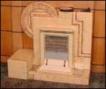 The 1930s household did, however, demand one luxury that very few Victorians had had, and it was a luxury that the traditional fireplace was easily adapted to provide: running hot water. A “back boiler” was set into the back of the chimney breast above the grate, using the heat from the fire to heat water in the tank that would then rise up to another tank at the top of the house. The fireplace had first enabled us to have upstairs bedrooms in the sixteenth century. Now, in the twentieth century it was providing us with upstairs bathrooms as well. Many houses still retain their back boilers, left to rust in the chimney breast long after they were superseded by more modern alternatives. Renaissance Antique Fireplaces The use of ceramics fitted in with the need for materials that could be machine made and mass produced. The moderne home wanted stark clean lines and bright light colours. Ceramic tiles created the popular chunky box shapes. Glazed finishes were often dramatic with mottles, pastel colours and iridescent glazes. Fireplaces became works of art based on geometrical designs, zigzags and sunbursts, fashionable curves or Egyptian and oriental motifs. The so-called "style moderne" transformed the humble fireplace into a work of art - a work of art many homeowners are now anxious to recreate.' Home is where the hearth is' by David Thame