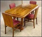 Elements that are easily identifiable in furniture pieces are elegant, geometrical designs and angular pieces. One only has to look at Art Deco architectural styles, such as the Chrysler Building or the Empire State Building in New York City, to admire this style's simplicity. Art Deco Dining Room Furniture: Love to know Veneer furniture could be mass produced once synthetic glues were developed during the 1920's and 1930's. Veneer became the popular material choice for Bauhaus and Art Deco designers. Light in weight and capable of being bent into elegant, curvilinear forms it has been in use in furniture making since the eighteenth century. Because it was so cheap, durable and easily accessible it became an important medium for experimentation by modernist designers from the 1920's onwards. The History of Plywood for the design and manufacture of Modern Furniture